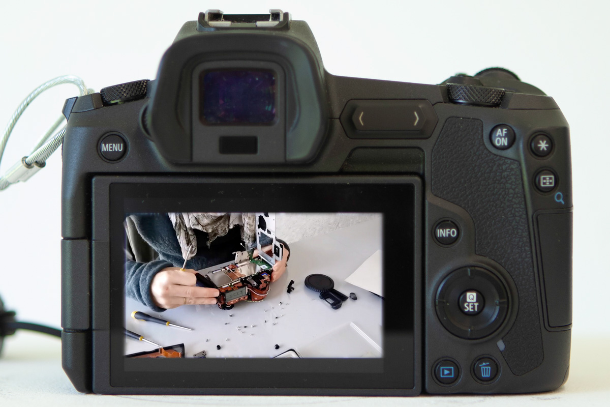 Kamera I is a video of the deconstruction of a camera, played on the screen of a digital camera.